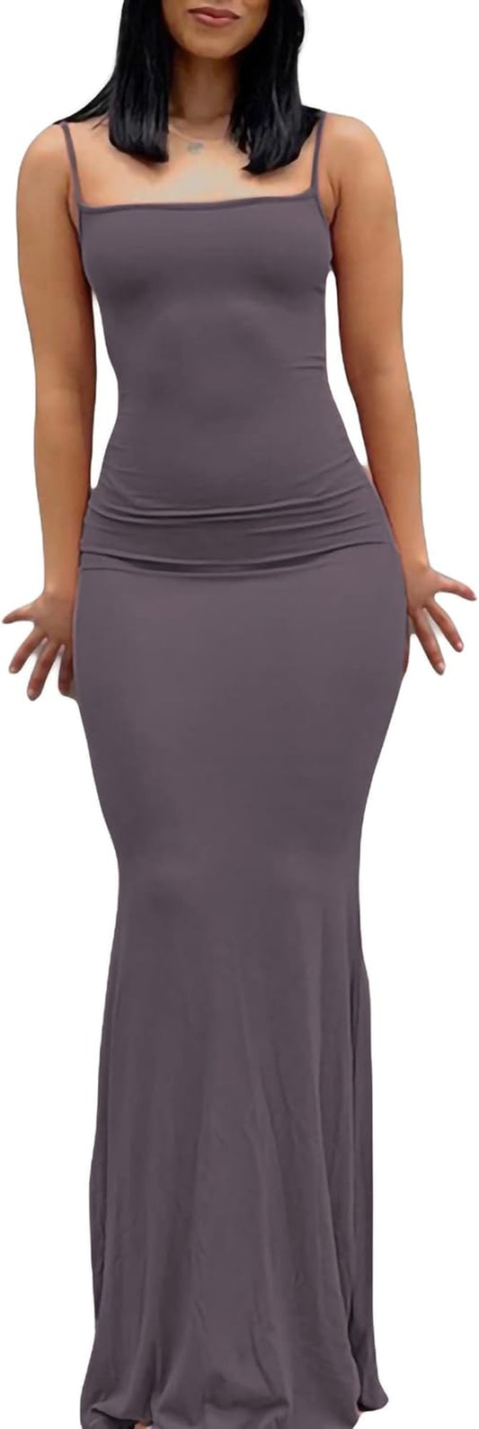 Women Spaghetti Strap Bodycon Dress Sexy Sleeveless Fish Tail Dress Evening Party Bodycon Long Skirt